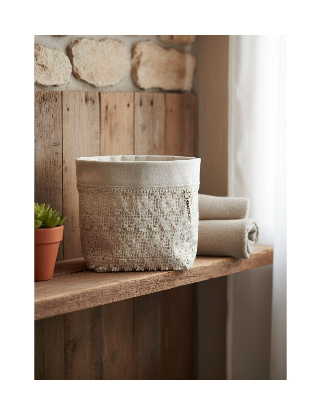 Organizador/Contenedor de tela Daira multiuso con puntillas.